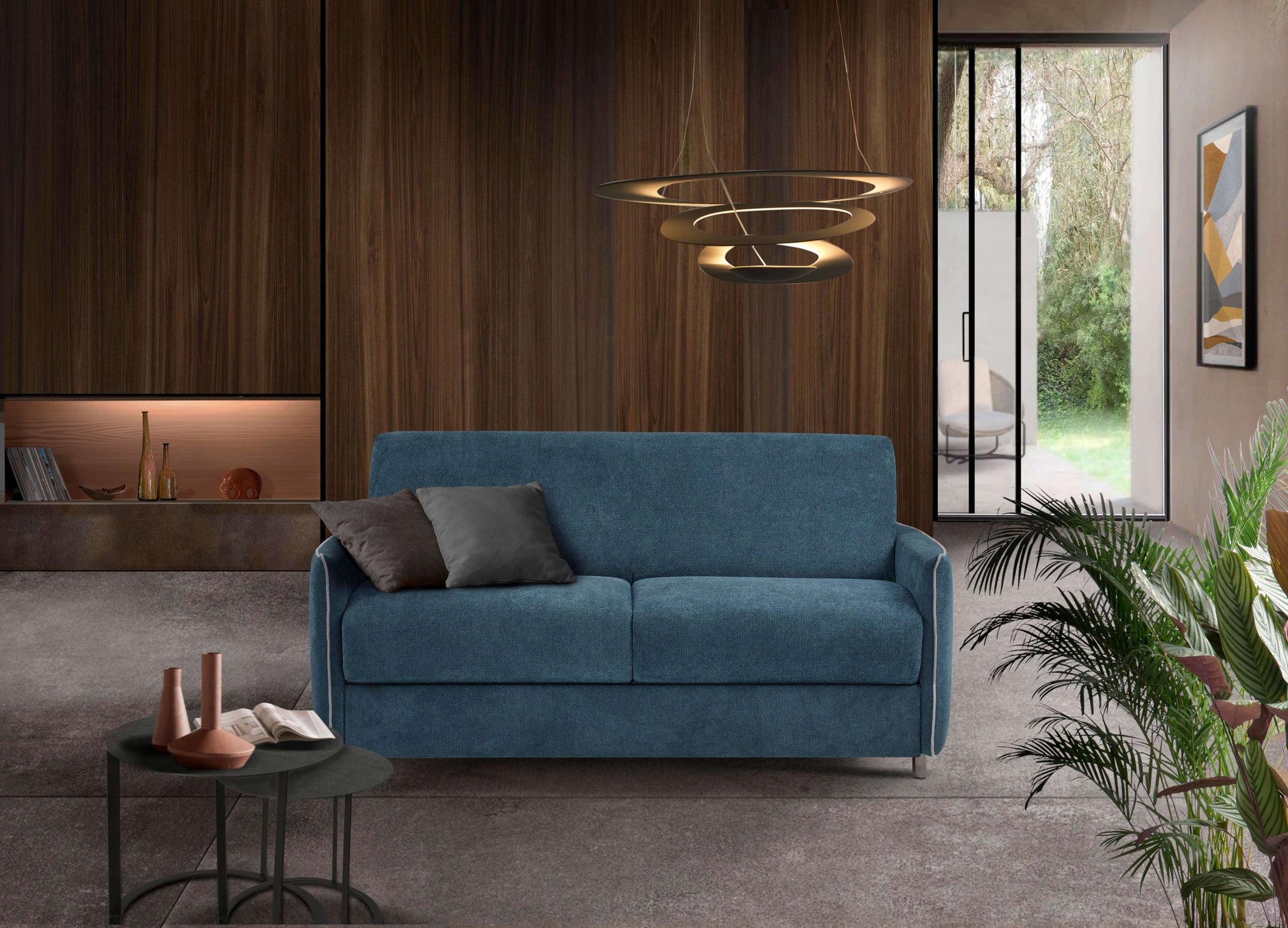 Opuštanje kao umjetnost: — sofa iz nove kolekcije, savršeno prilagođena za male prostore. Kontrastne lajsne na zaobljenim naslonima za ruke omogućavaju vam da kombinujete omiljene boje i kreirate jedinstvenu ugaonu garnituru za vaš dom.Kada se razvuče, Giotto ima pravi madrac debljine 17 cm, koji pruža udobnost i kvalitetan san.