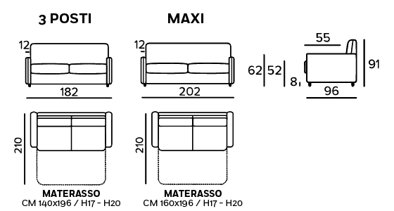 Svi dijelovi sofe su proizvedeni u Italiji. Sofa ima mehanizam za razvlačenje koji pretvara sofu u pravi krevet za spavanje sa madracom debljine 17 cm.