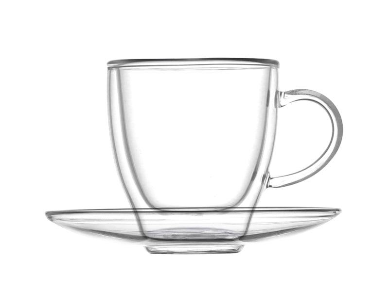 Za ljubitelje kafe, dvostruka espresso šoljica je obavezni dio svakog ormarića. Izrađen od elegantnog prozirnog stakla s dvostrukom završnom obradom, Brandanijev set espresso šoljica garantuje izdržljivost, kvalitet i taj najvažniji šarm. Prozirnost stakla vam omogućava da uživate u svom omiljenom napitku očima, ispitujući ga unutar šoljice prije nego što ga i ispijete. Blago sužen oblik također pomaže u održavanju konačne pjene, angažujući sve naše nepce u 360-stepenom iskustvu užitka. Opremljene tanjirićem za praktično odlaganje kašike ili malih keksa, dvostruke espresso šoljice čine modernu i savremenu liniju vrijednu kolekcije.