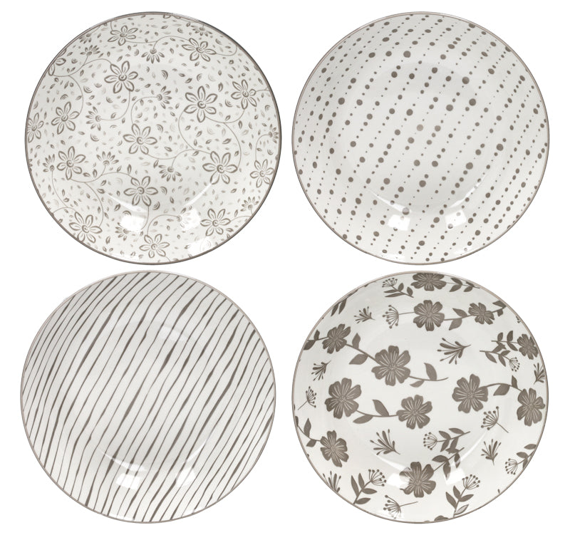 Rafiniran i skladan stil, s Loto tanjirima marke Brandani. Set od 4 porculanska tanjira za supu s cvjetnim i geometrijskim ukrasima, ujedinjenih nježnom i elegantnom golublje sivom bojom. Cvjetni ukrasi prenose svježinu i toplinu, dok geometrijski elementi dodaju ravnotežu i savremeni dodir. Rezultat je set posuđa savršen za svakodnevnu upotrebu i posebne prilike, koji se može prilagoditi i klasičnim i modernim postavkama stola. Kvalitetan porculan osigurava dugotrajan sjaj i ugodan osjećaj, što Loto tanjire za supu čini pouzdanim i ukusnim izborom.