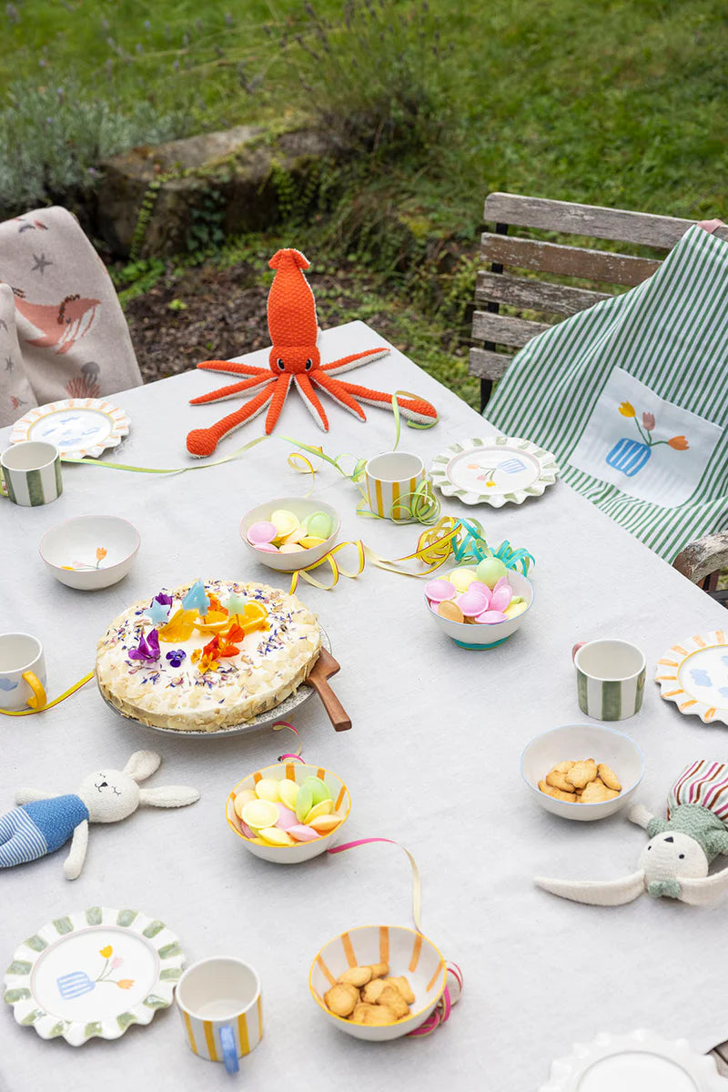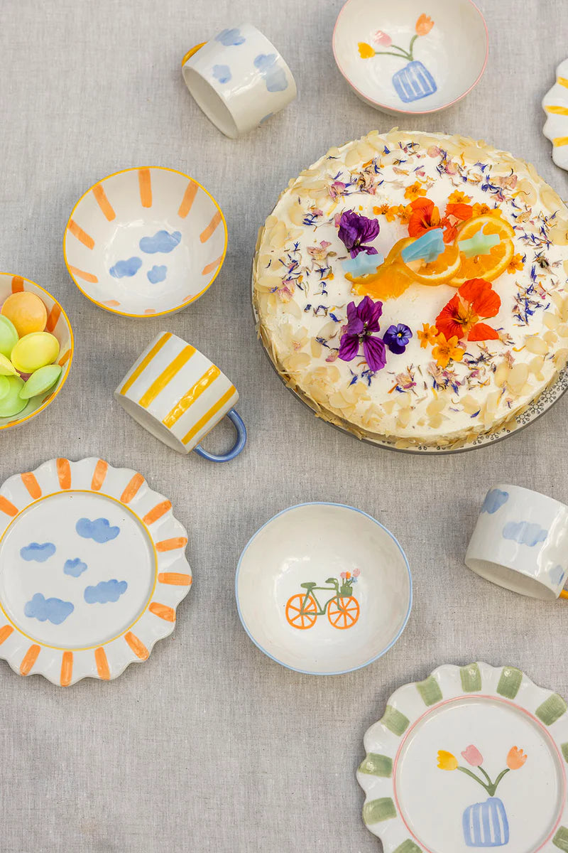 Bilo da se radi o doručku, ručku ili popodnevnom čaju, ovaj ručno oslikani tanjir je pouzdan pratilac malih gurmana tokom cijelog dana. Razigrani motiv oblaka unosi dašak lakoće i mašte na sto, pretvarajući svaki obrok u malu avanturu. Napravljen od čvrste kamene keramike, tanjir može izdržati manje nezgode i posebno je praktičan za svakodnevnu upotrebu jer se može prati u mašini za pranje posuđa.