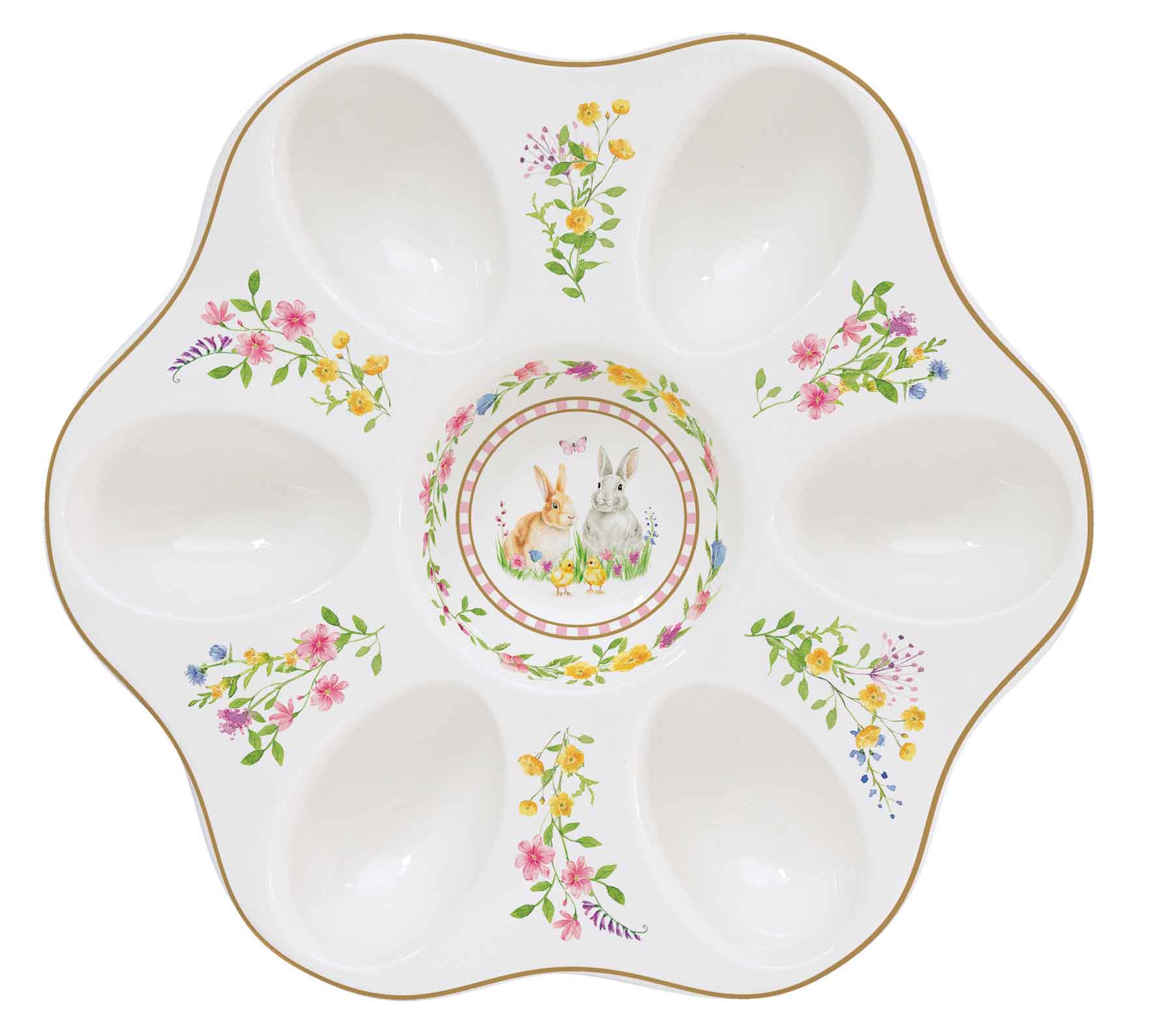 Napravljeno od visokokvalitetnog, izdržljivog porculana. Ima 6 udubljenja za odlaganje jaja. Kompaktnog je i praktičnog dizajna. Pogodno za pranje u mašini za pranje posuđa na programu za nježno pranje.