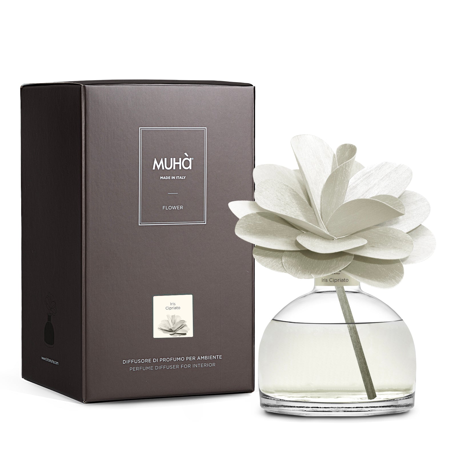 Mirisno, šareno, elegantno, osvježivač prostora u prefinjenoj staklenoj boci sa ručno izrađenim difuzorom u obliku cvijeta od prirodnog brezovog drveta.